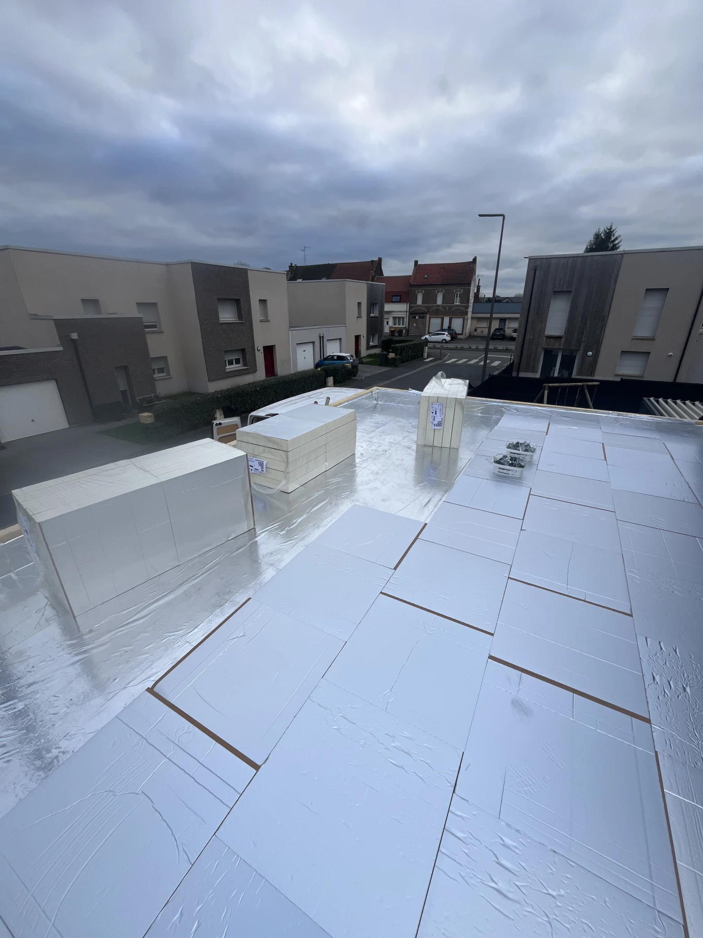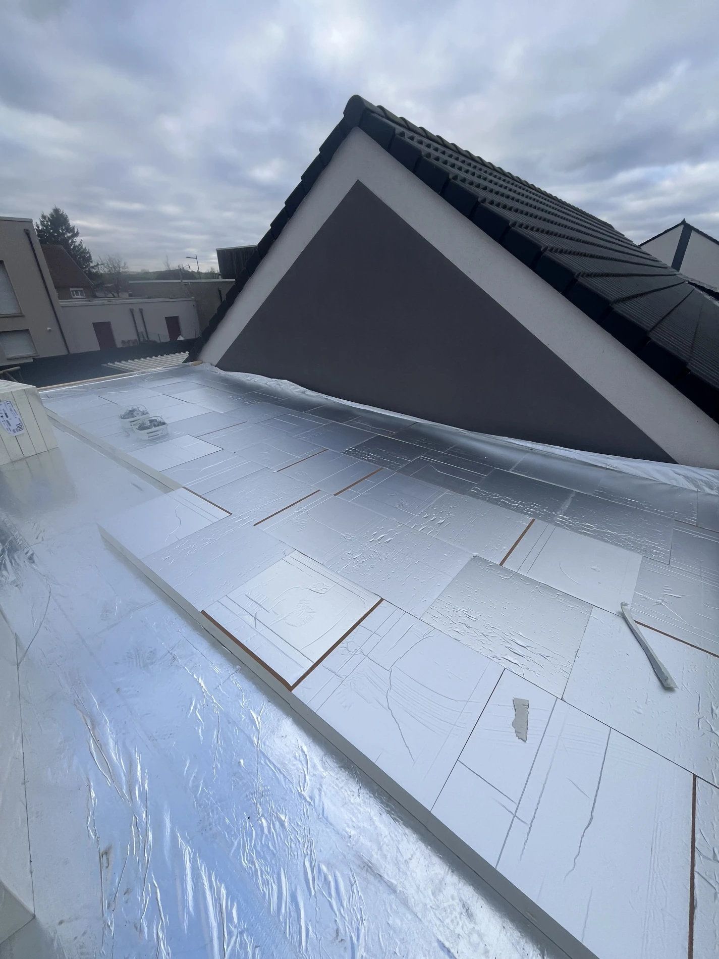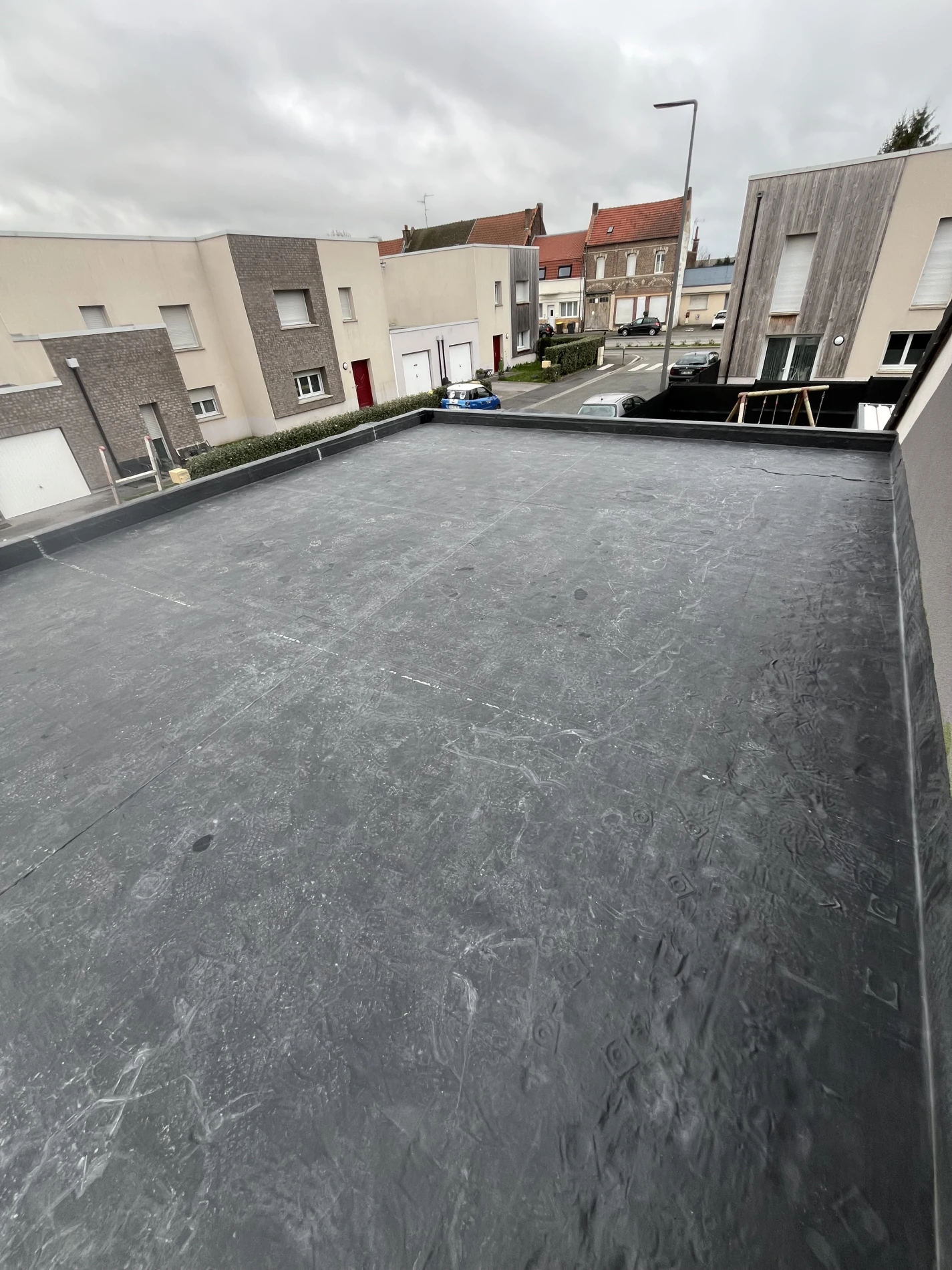 Pour la couverture, une membrane d’étanchéité EPDM Firestone a été installée, offrant une protection durable contre les infiltrations et une excellente résistance aux intempéries. Ce choix de matériau haut de gamme s’inscrit dans une logique de construction durable et performante.